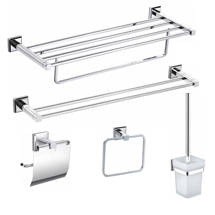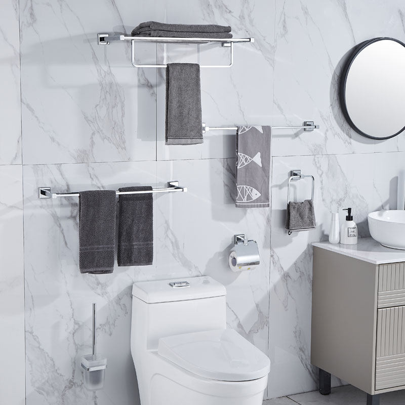 全铜卫浴五金挂件套装浴室毛巾架卫生间浴巾置物架厕所双杆五件套