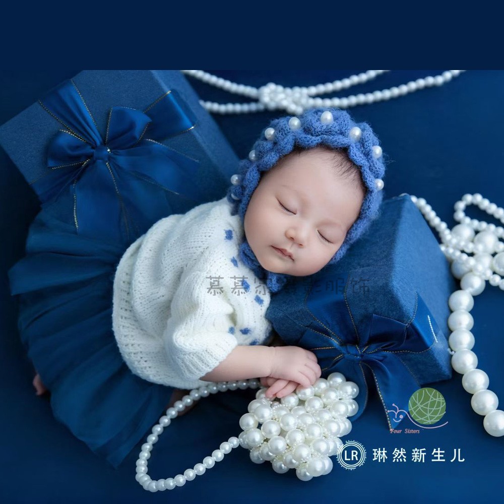 蓝色珍珠女孩新生宝宝礼盒摄影服