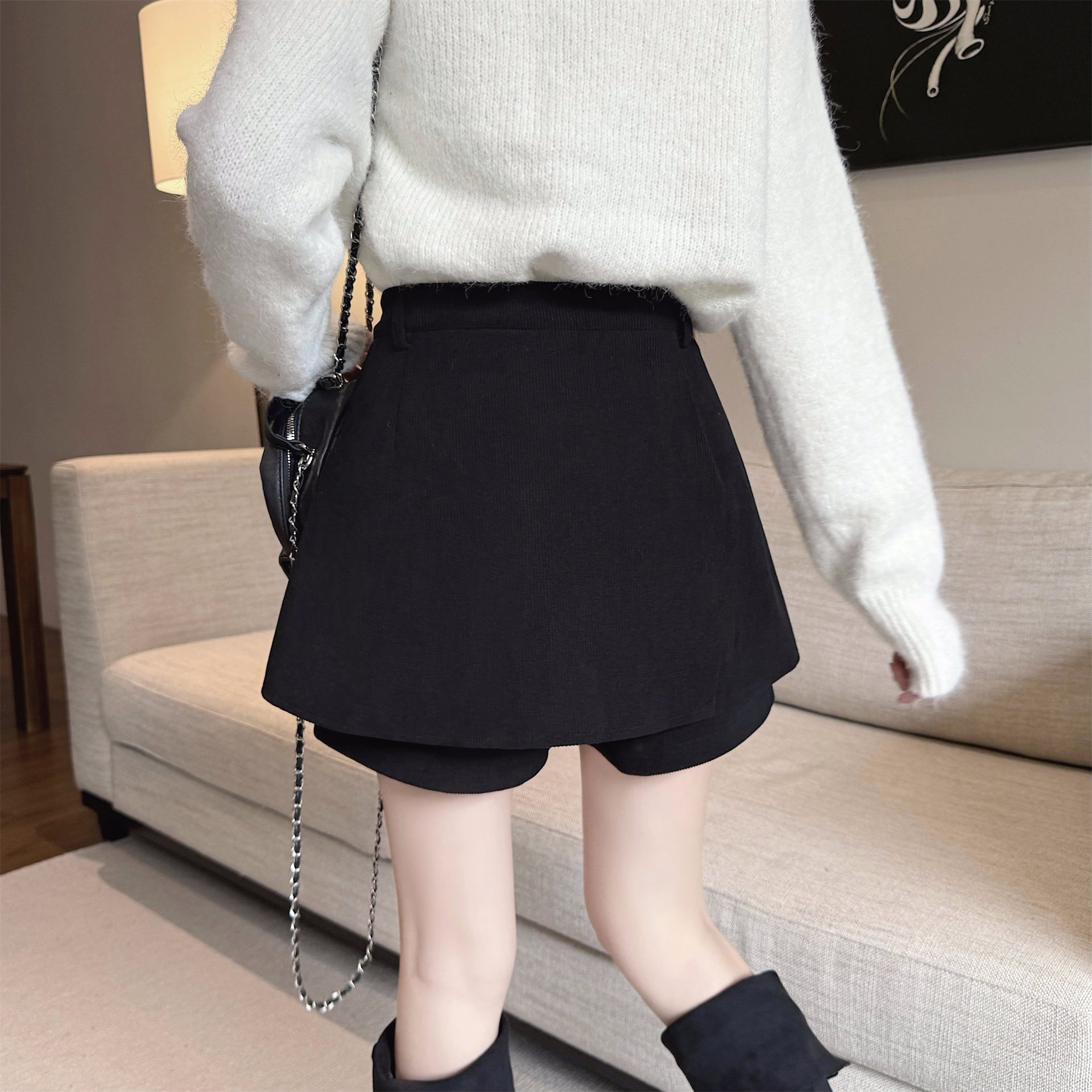 黑色灯芯绒半身裙秋冬A字裙短裙