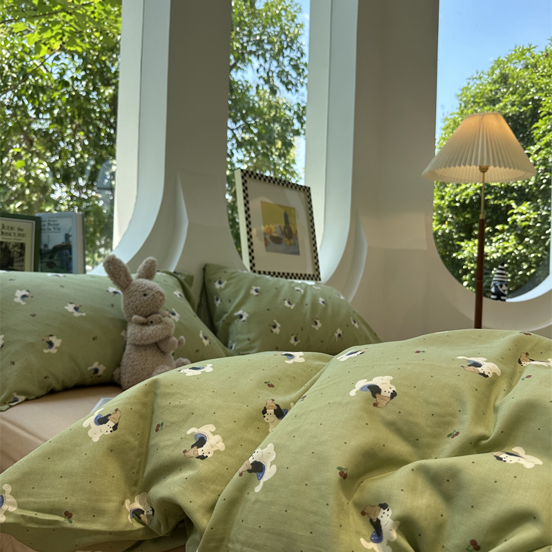 小清新双层纱可爱小狗纯棉四件套