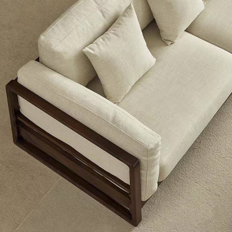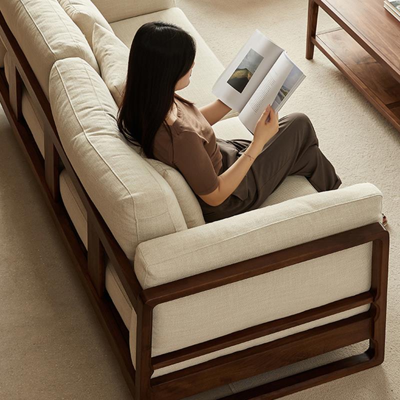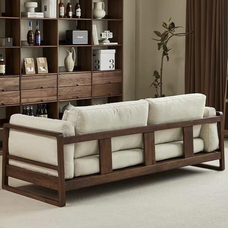 新中式北美黑胡桃木客厅全实木沙发大户型简约现代三人位布艺沙发