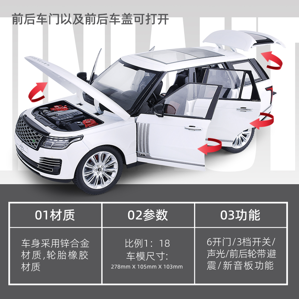 黑曼巴1/18路虎揽胜50周年风云纪念版合金汽车模型大号越野车盒装