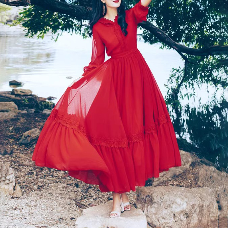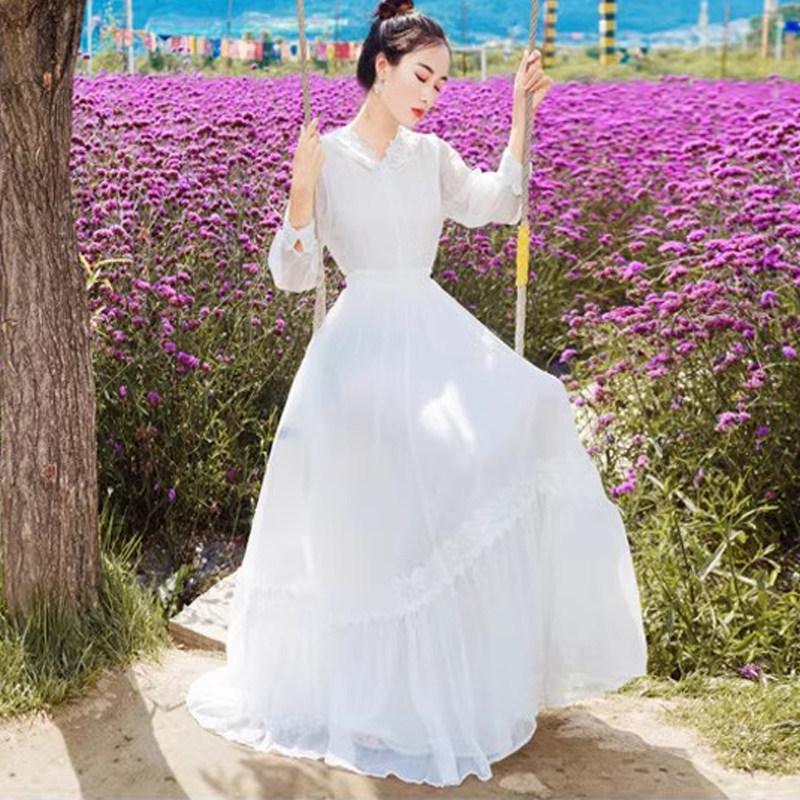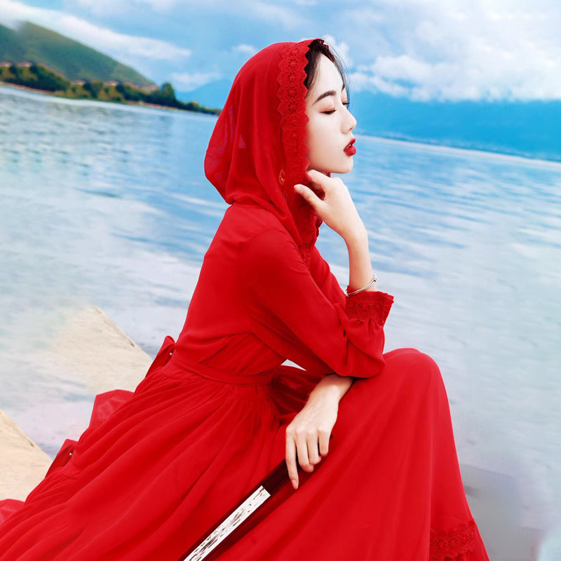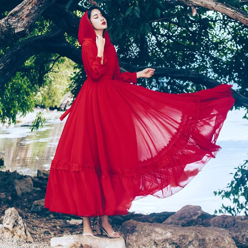 超仙新疆三亚沙漠海滩旅游度假真丝桑蚕丝连衣裙连帽防晒大摆长裙
