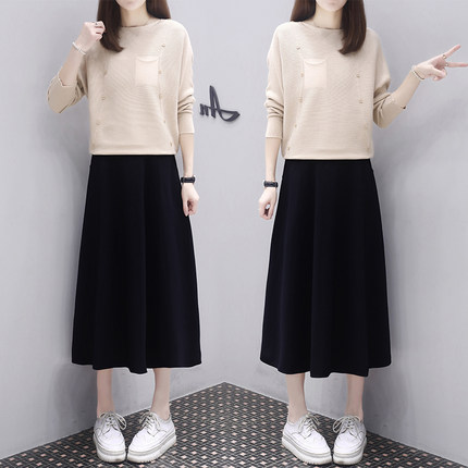 春装2026年新款女连衣裙子穿搭两件套收腰显瘦气质中长款休闲套装