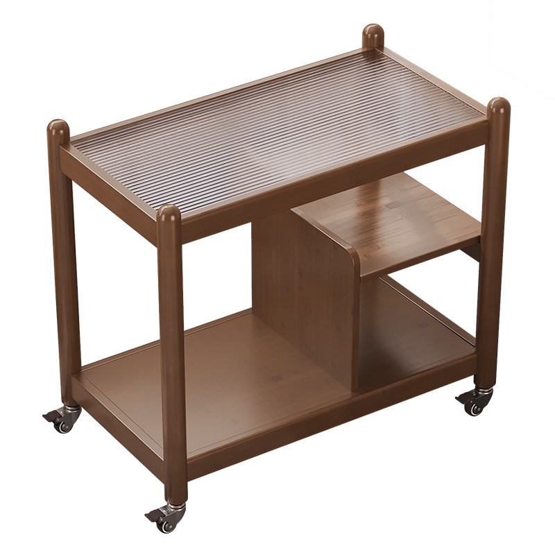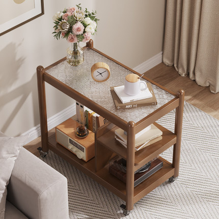 推拉茶几中古风小推车复古边几客厅置物可移动沙发旁家用玻璃带轮