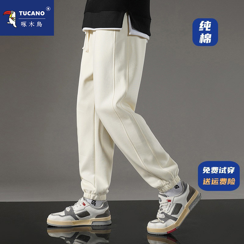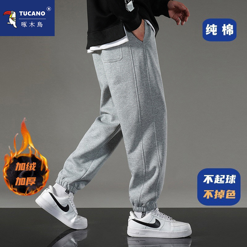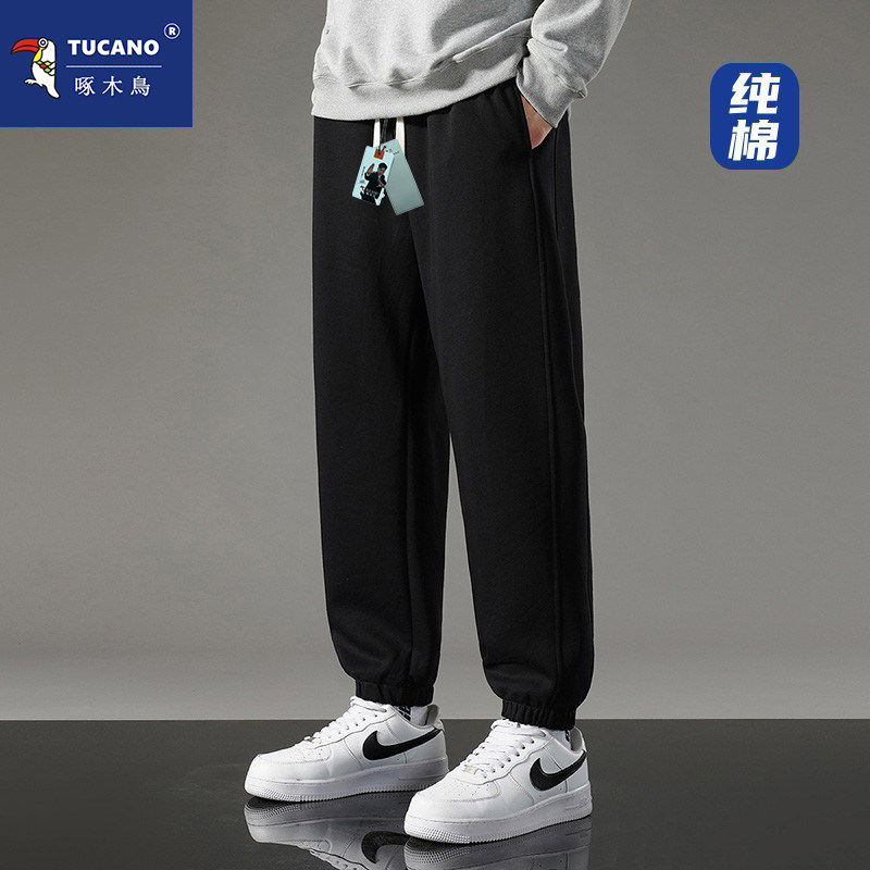 啄木鸟纯棉裤子男春秋束脚卫裤宽松运动裤男士秋冬季小脚休闲长裤