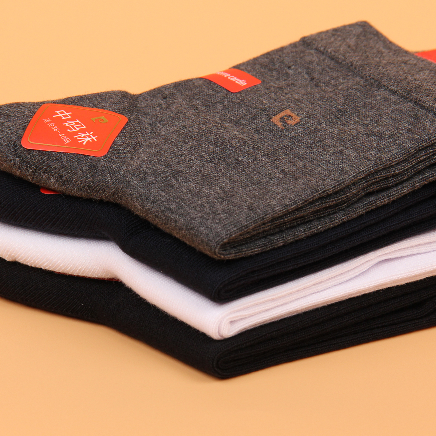 皮尔卡丹纯棉中筒秋冬男袜小码