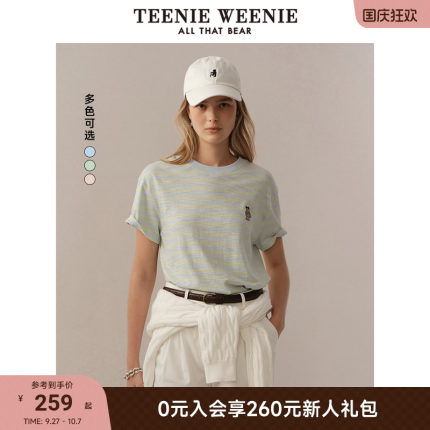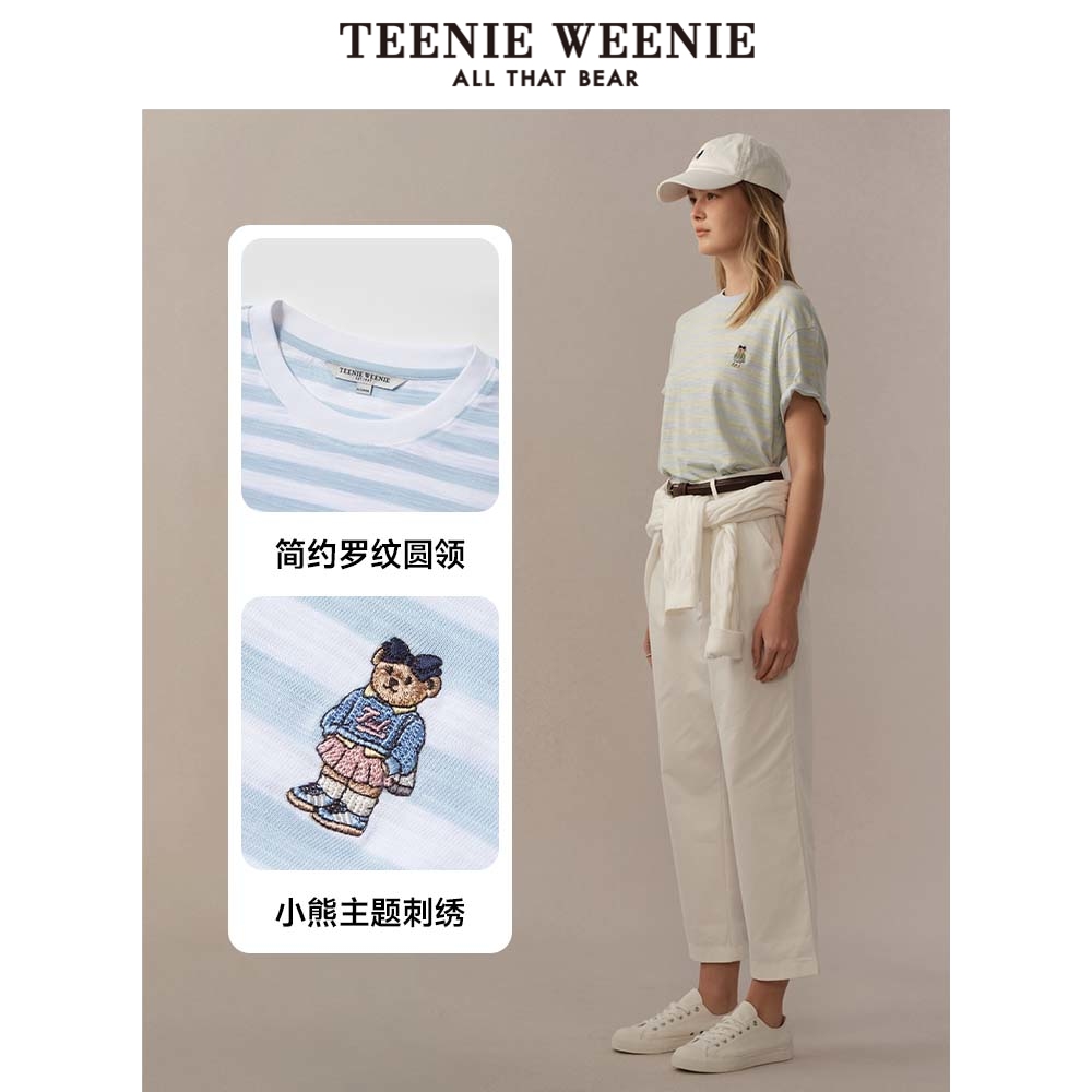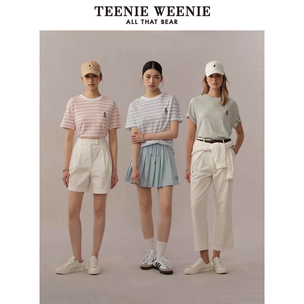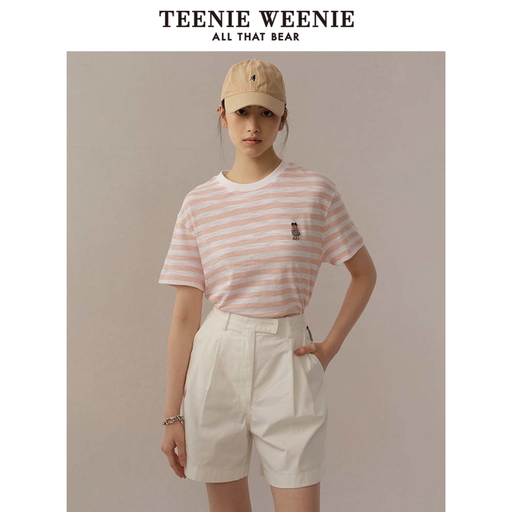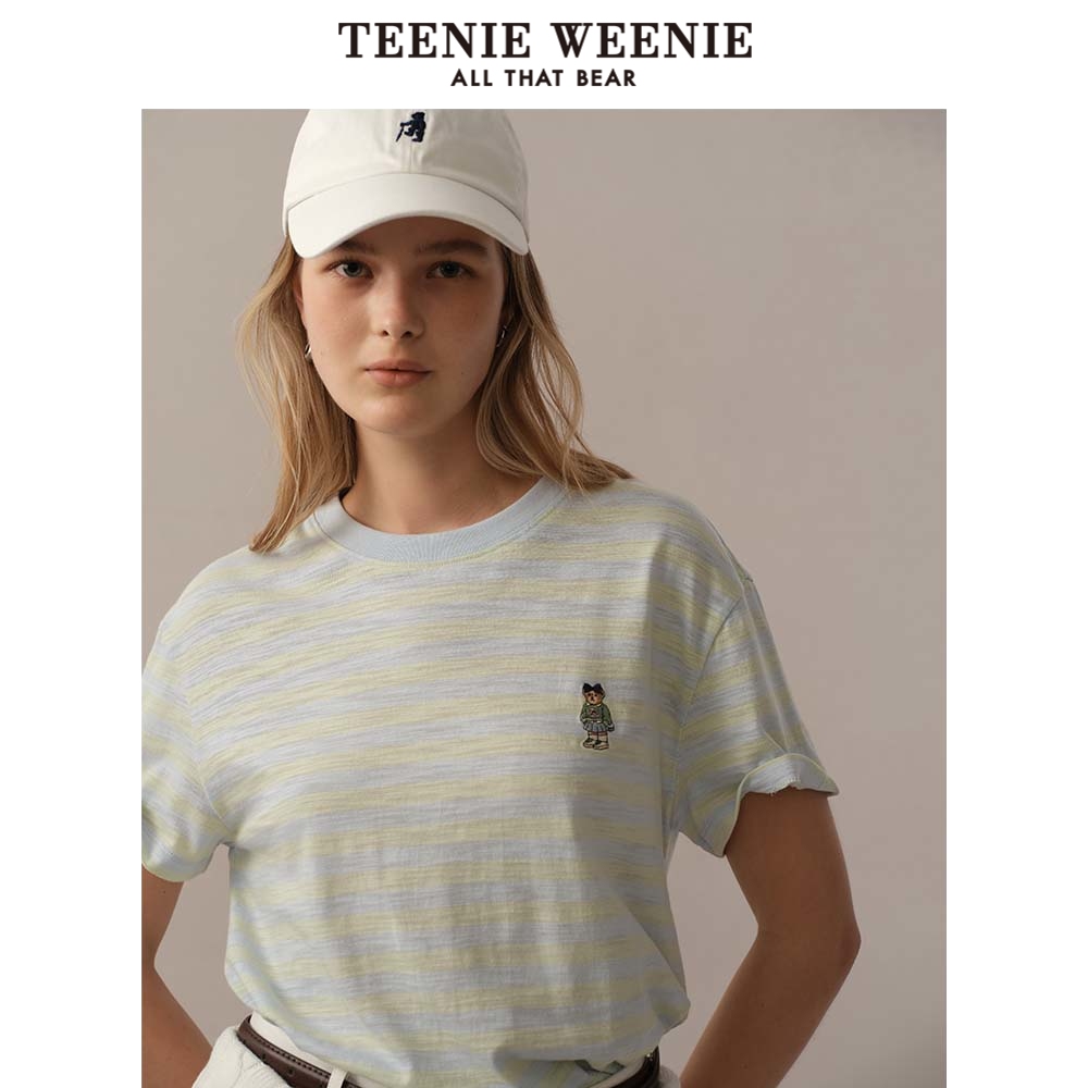 TeenieWeenie小熊女装T恤2025夏季新款活力学院时髦条纹圆领短袖
