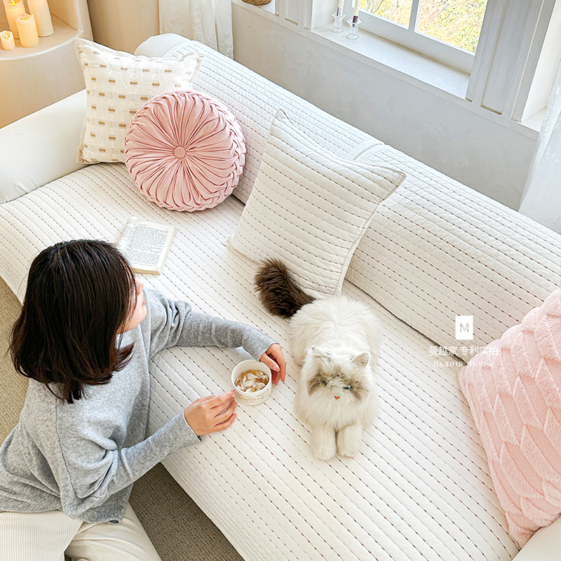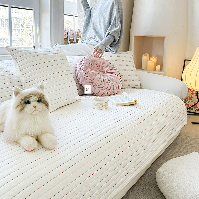 M.life 中古条纹 简约全棉沙发垫沙发套罩巾坐垫纯棉坐垫防滑垫子
