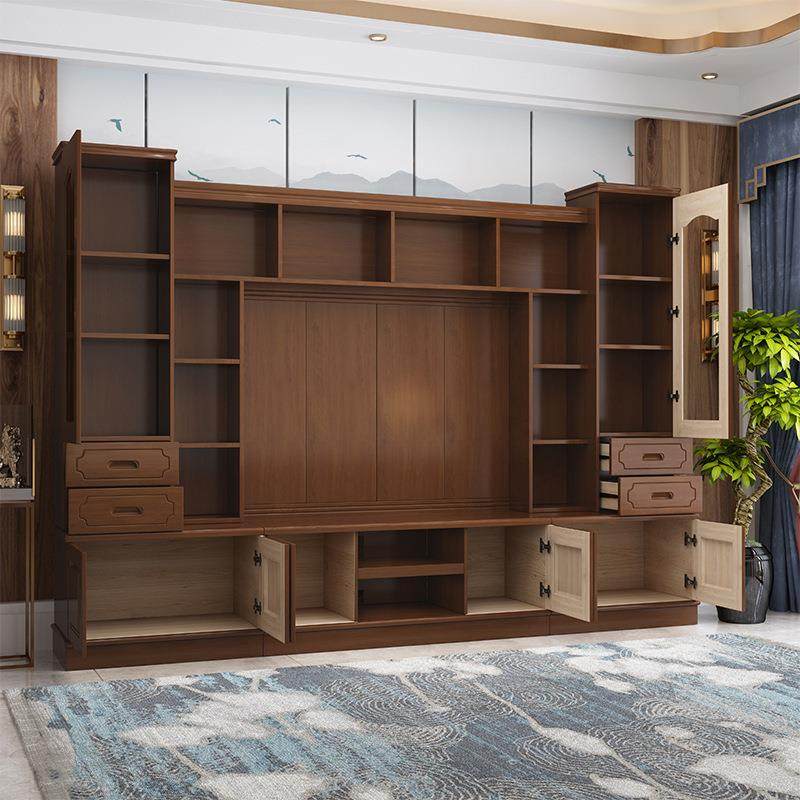 实木电视柜组合墙柜现代简约客厅多功能储物背景柜组装影视柜