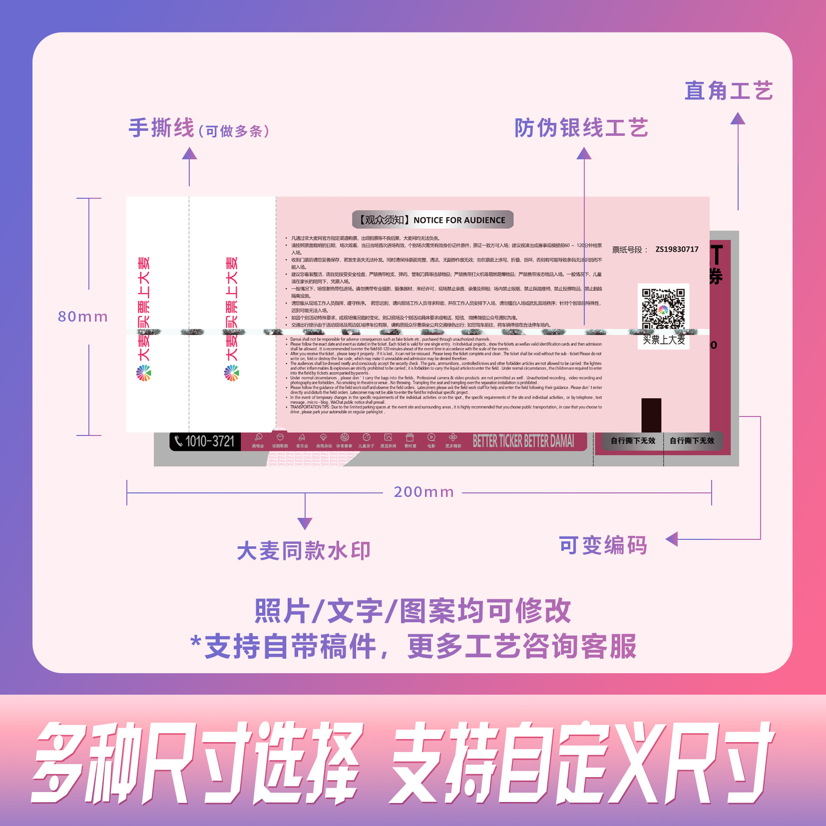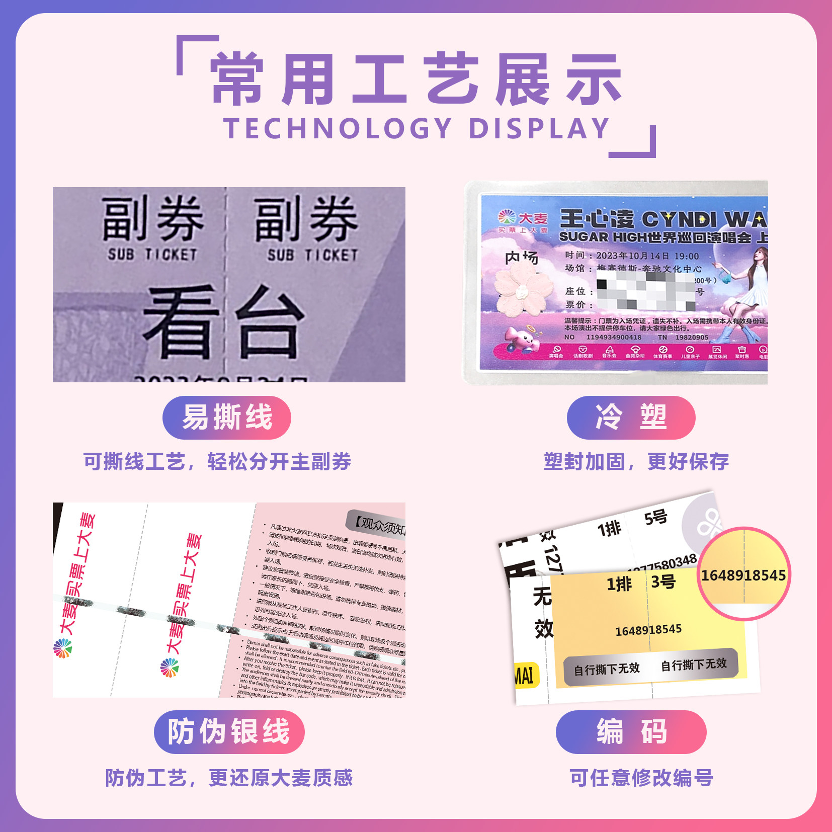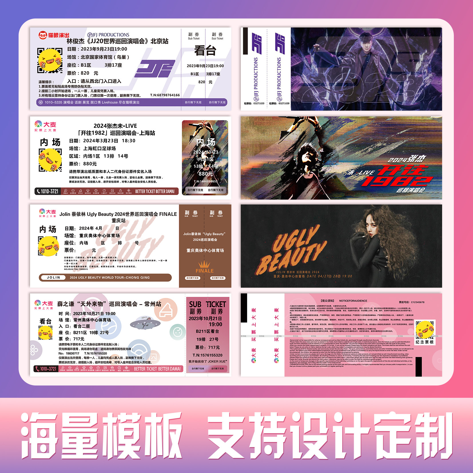 大麦猫眼演唱会门票打印定制纪念票根世界巡回演出各明星周边门票