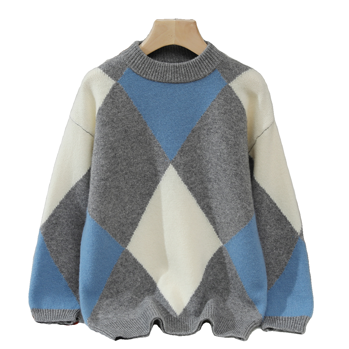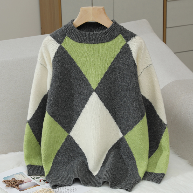 23秋冬新款男童半高领羊毛衫棱形快套头女童针织毛衣女童羊绒打底