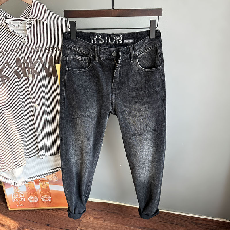 锥形9分 2026春秋单裤略短宽松小脚百搭黑色水洗无弹耐磨潮牛仔裤