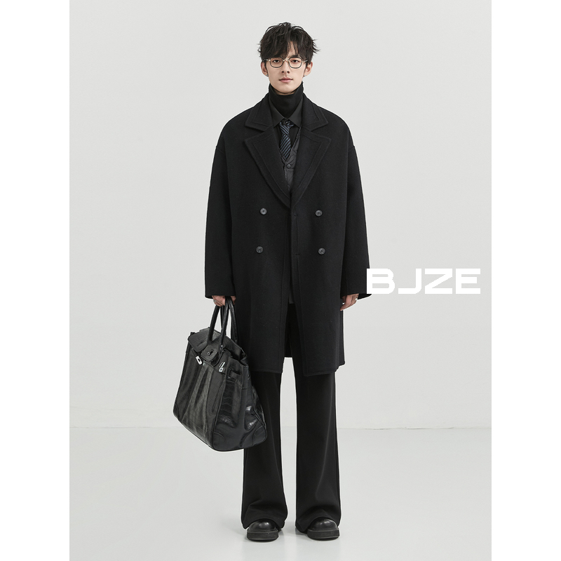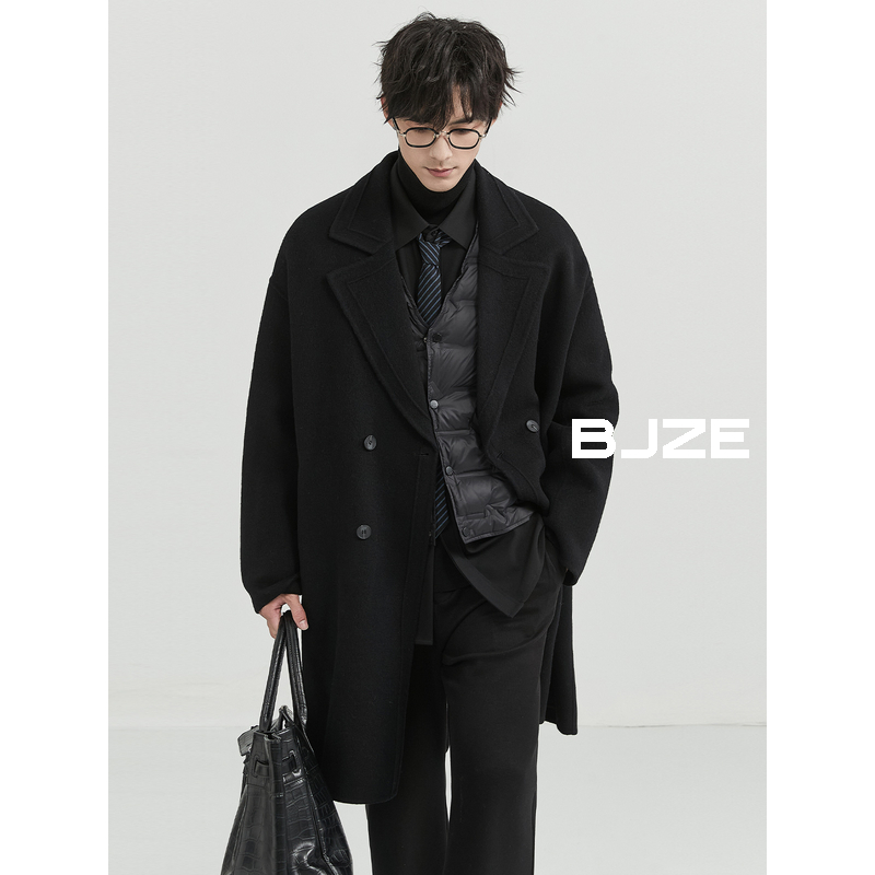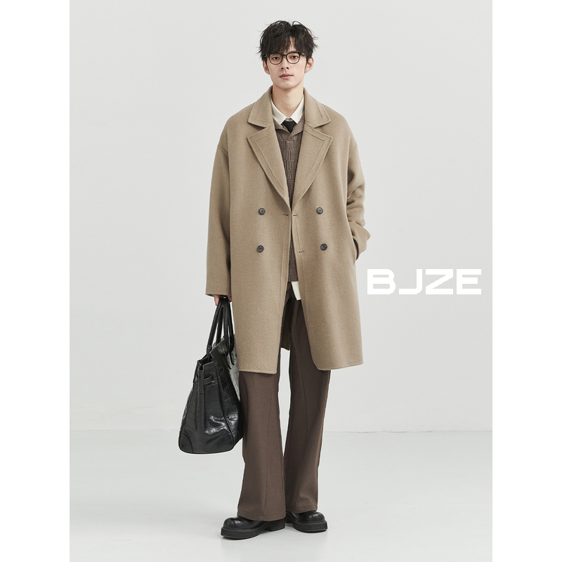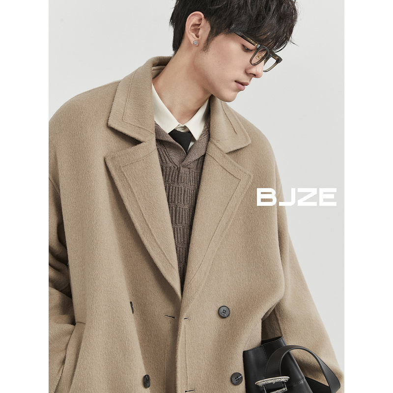 BJZE男装冬季高级感定织羊驼绒羊毛混纺双面呢大衣中长款呢子外套