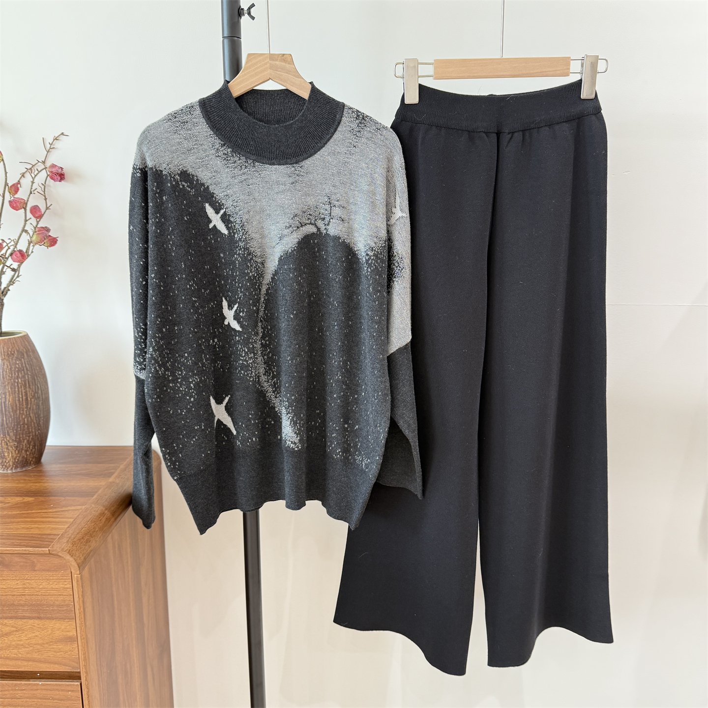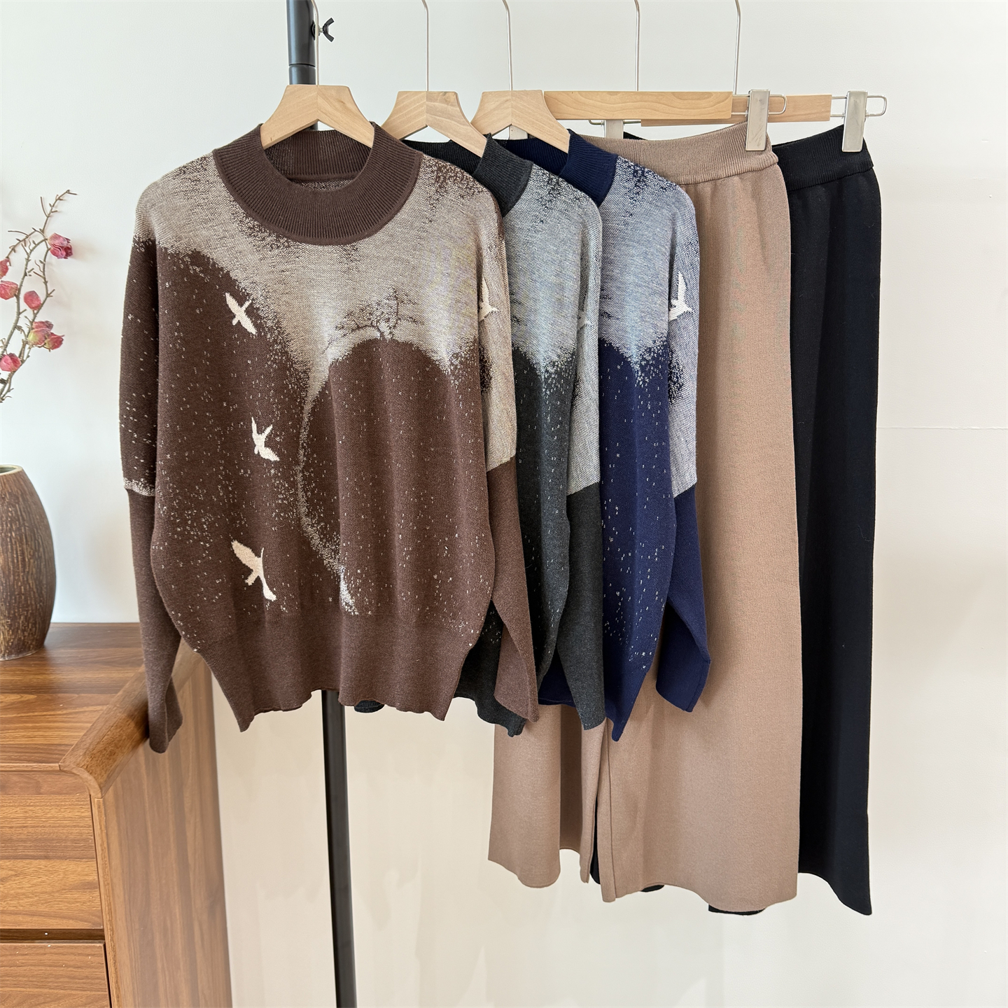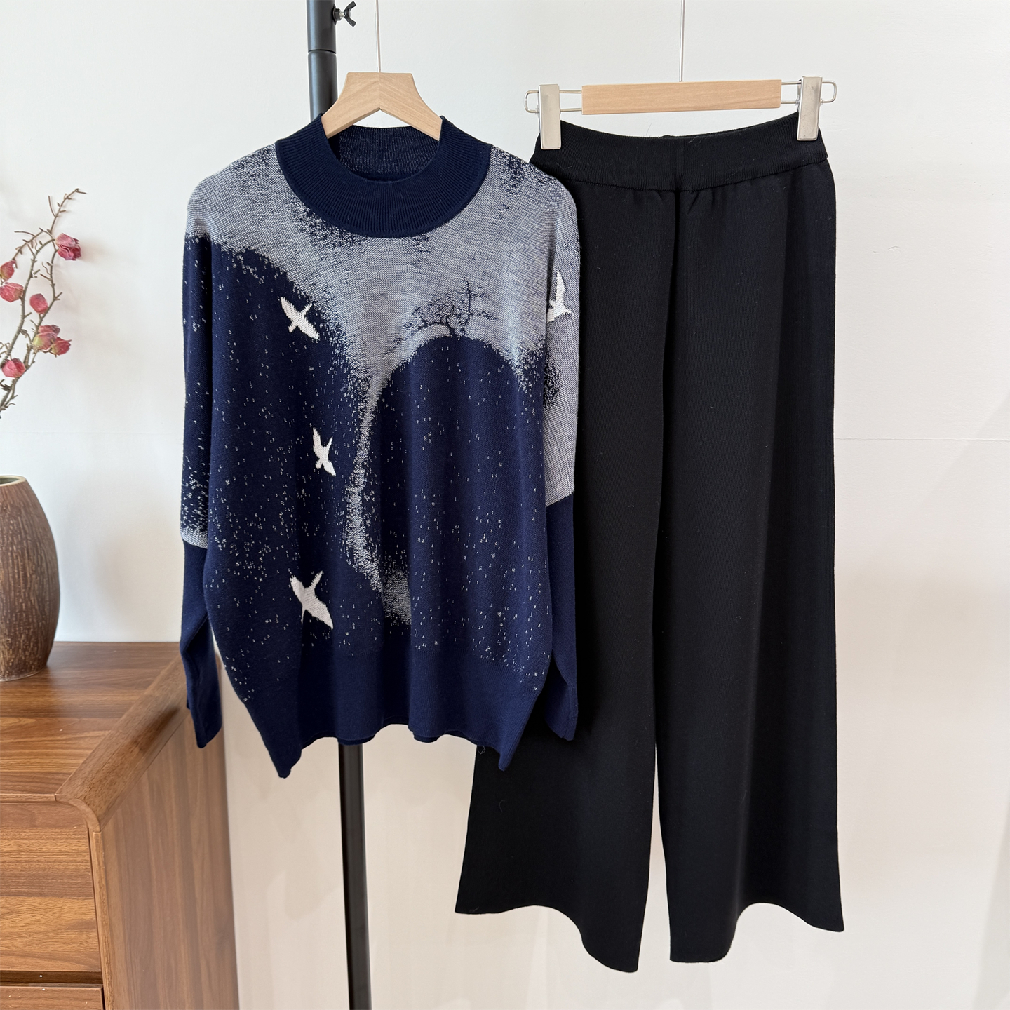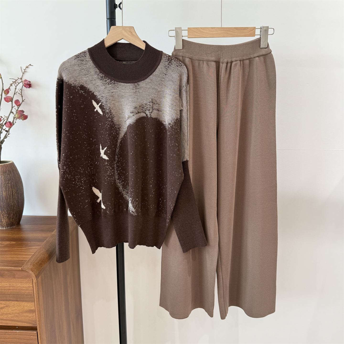妈妈秋装针织小衫时尚印花上衣2025新款中老年女春秋气质减龄套装