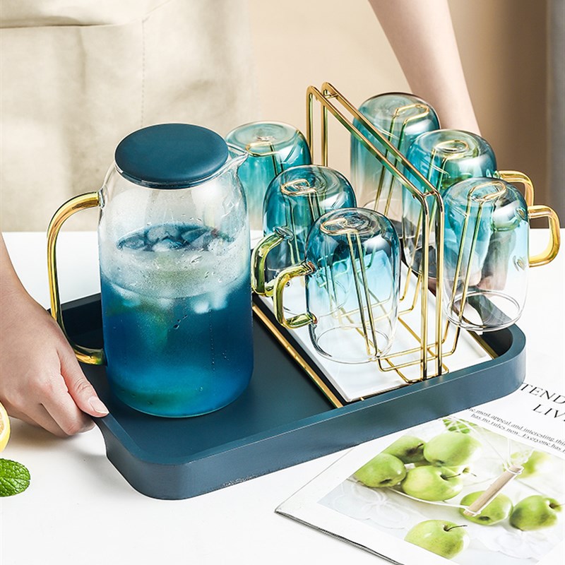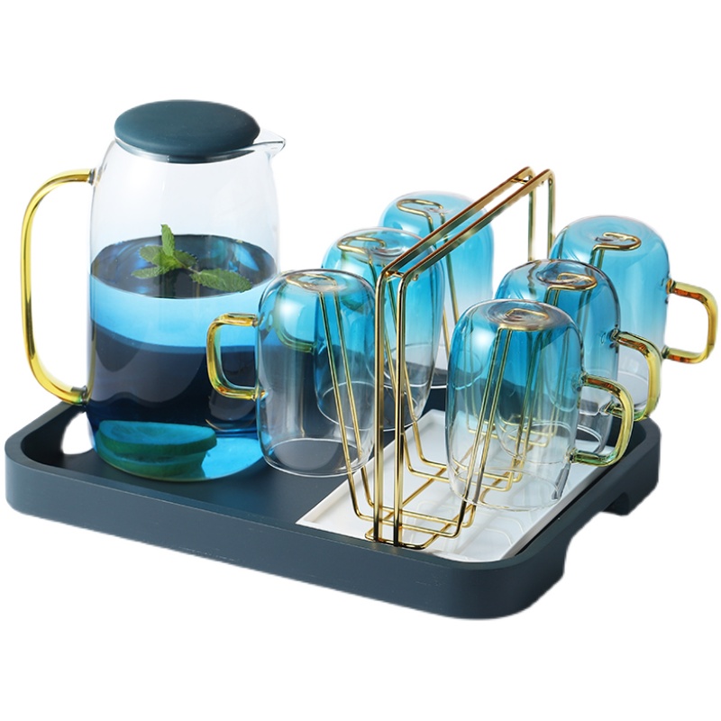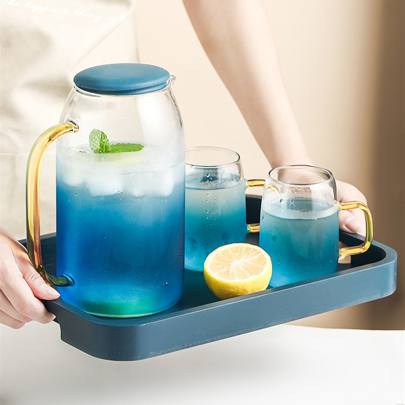 云石玻璃冷水壶耐高温家用1500mCl凉水壶大容量加厚轻奢水杯套装
