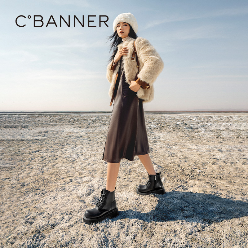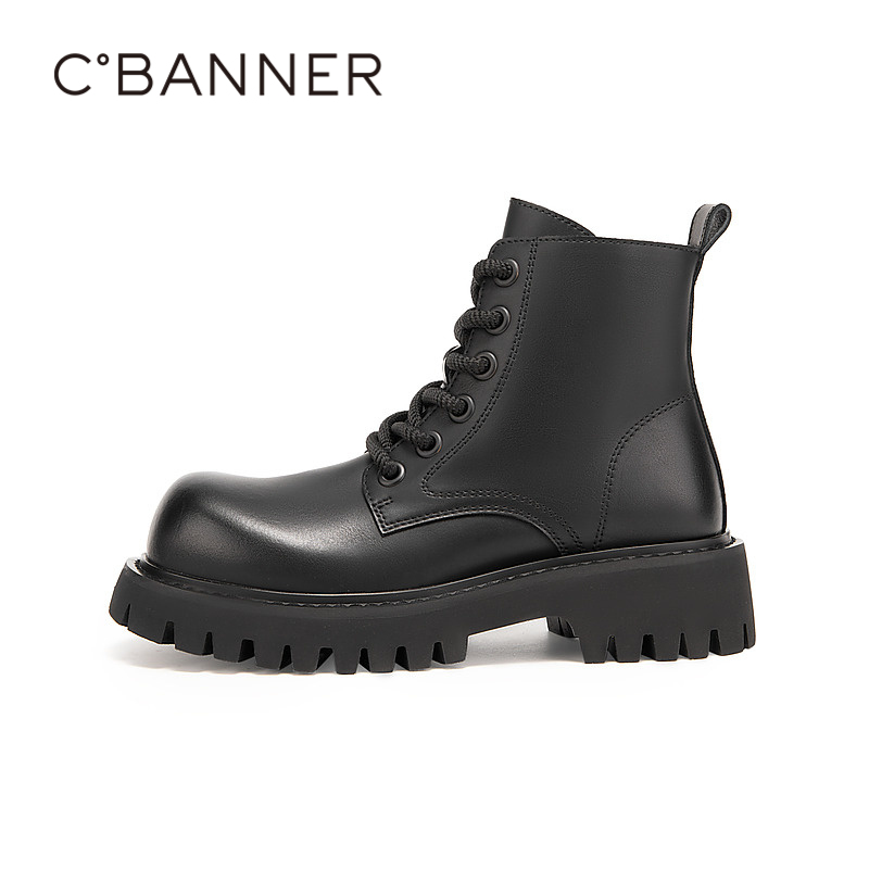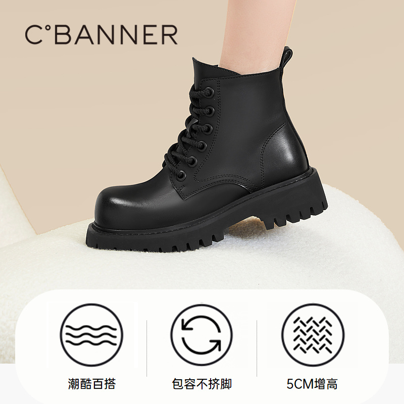 千百度厚底马丁靴女冬季新款洋气短靴真皮靴子鞋增高加绒保暖