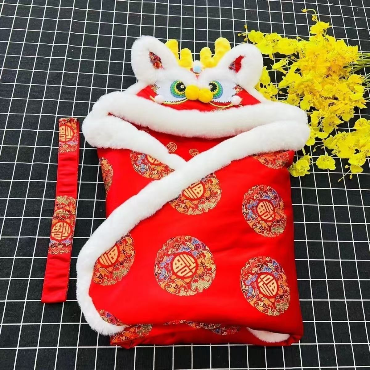 手工龙头抱被百天满月婴儿喜庆被子包被新生儿宝宝手工加厚保暖