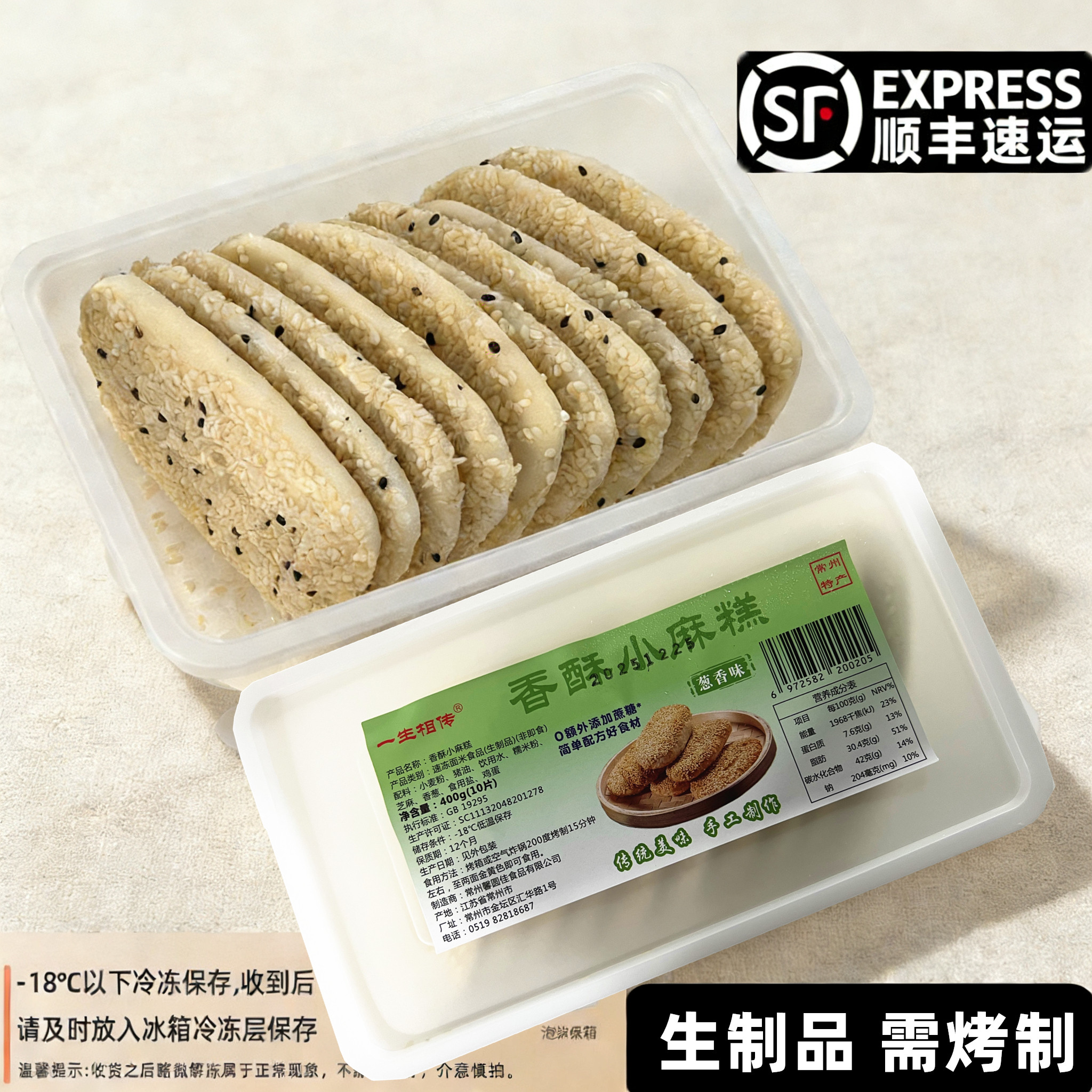 【无添加蔗糖】香酥小麻糕常州特产芝麻烧饼点心半成品葱香蟹壳黄