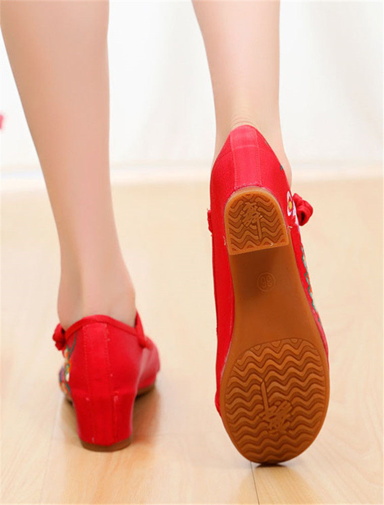 老北京绣花布鞋女中跟汉服搭配中国风复古时尚内增高古装绣花女鞋