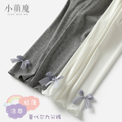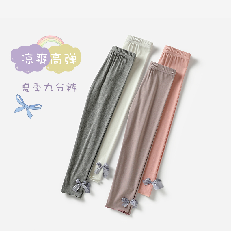 女童夏天超薄款莫代尔打底裤儿童宝宝外穿灰白色九分裤纯色长裤子