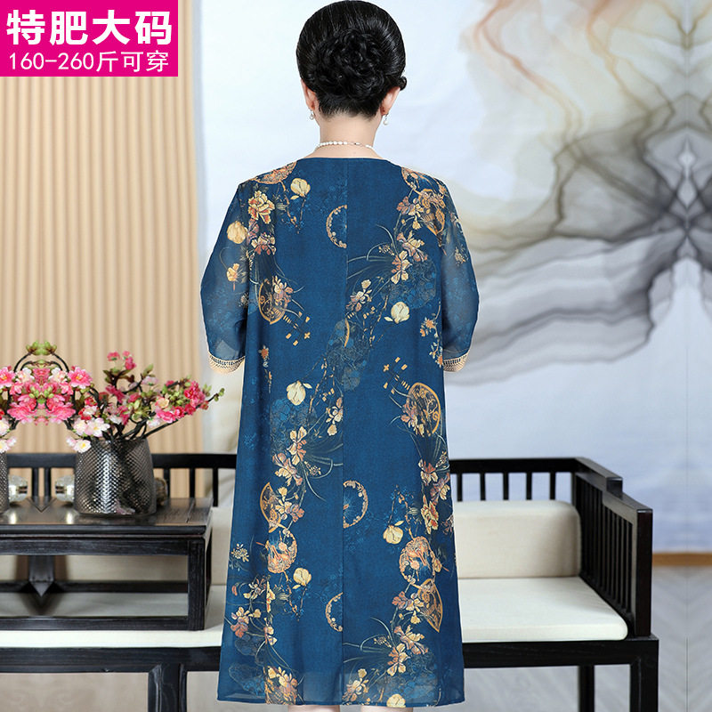 胖妈妈夏装连衣裙200斤加肥加大码女裙中老年女薄款遮肚直筒长裙
