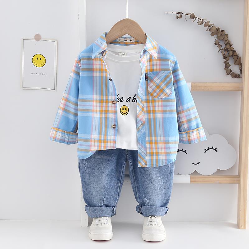 男童长袖格子衬衫纯棉2025春秋薄款儿童格子衬衣韩版男宝宝外套潮