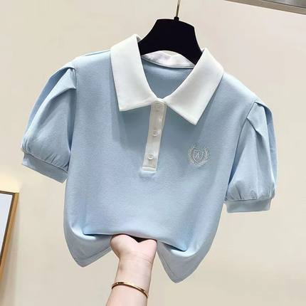 女童夏季新款POLO衫学院风t恤中大童短袖中学生纯色休闲泡泡袖