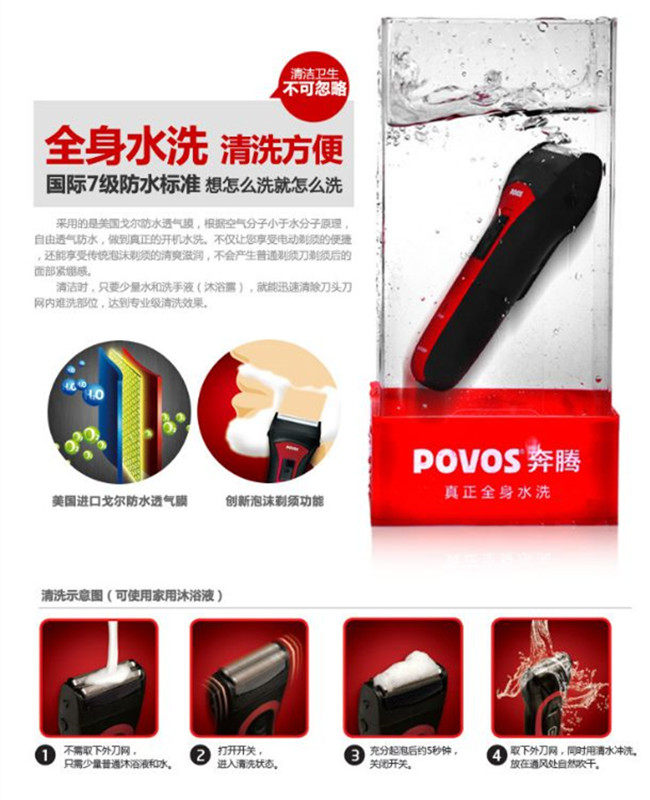 奔腾剃须刀2203/2208全身水洗硬胡子往复式刮胡刀电动充电胡须刀