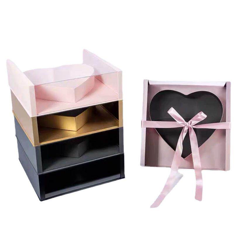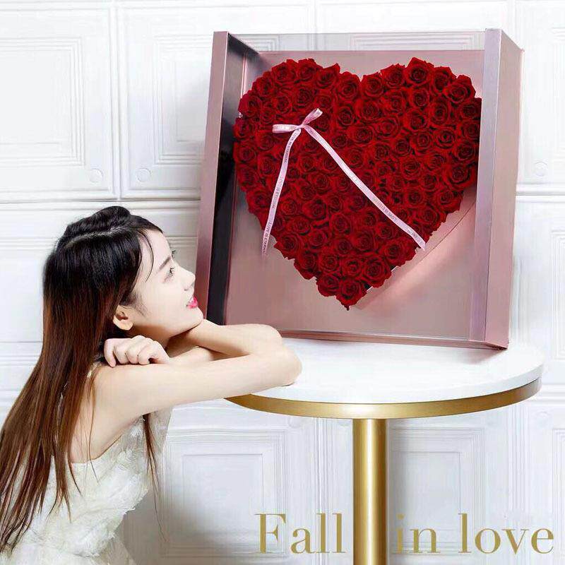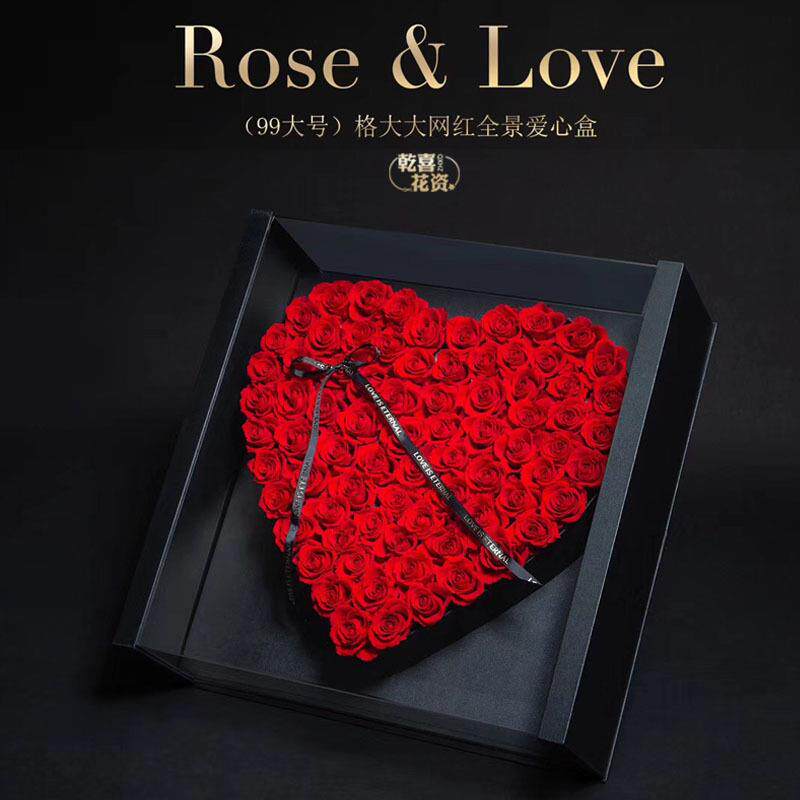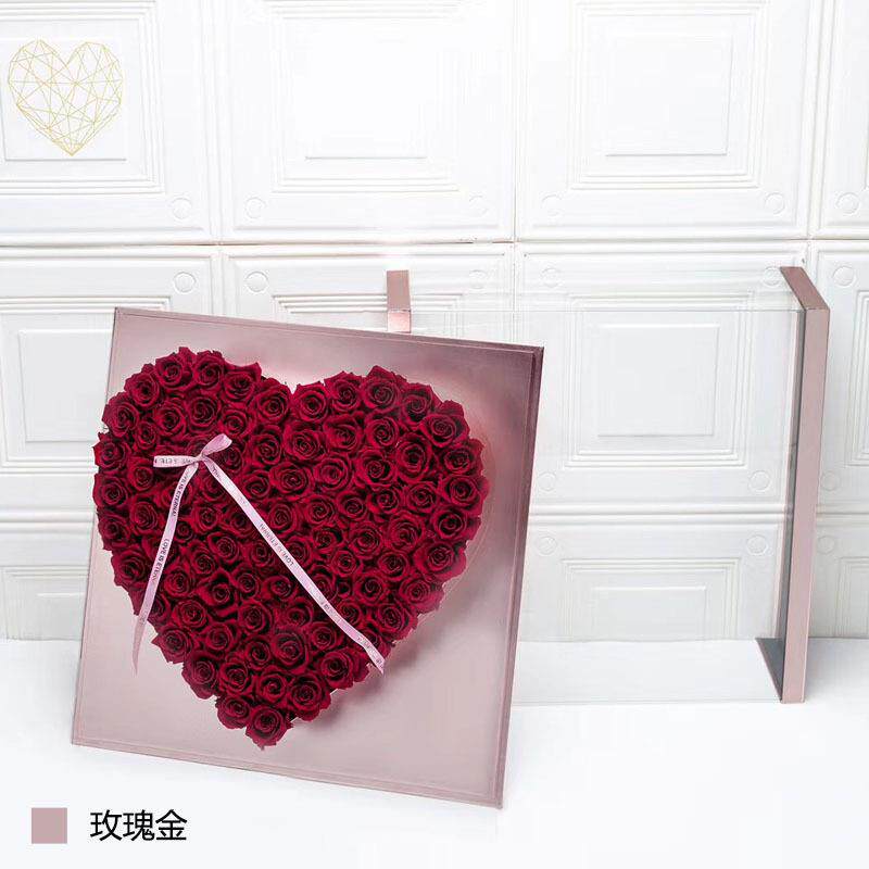 七夕情人节99支大号鲜花盒亚克力正方形全景爱心礼盒鲜花包装盒