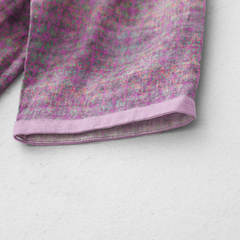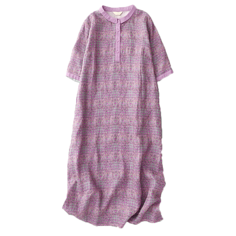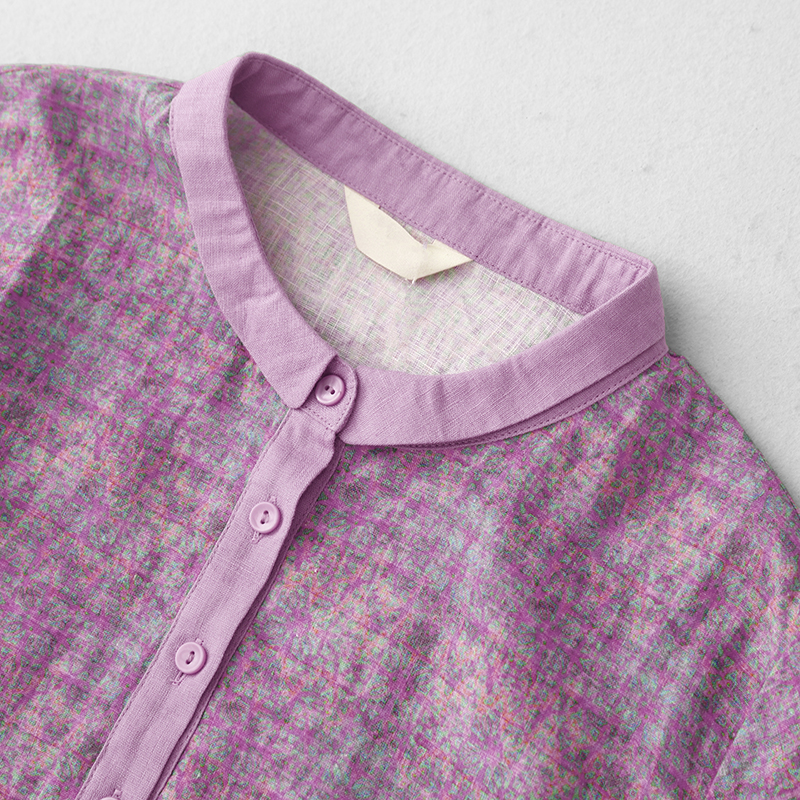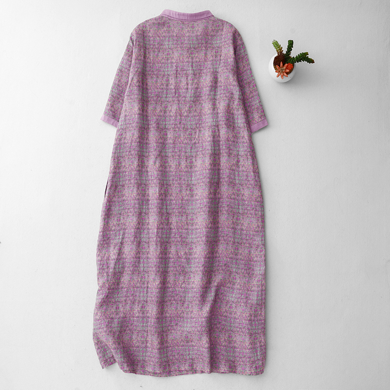 夏季新款亚麻文艺衬衫领中袖中长裙子女印花气质连衣裙~清仓尾货