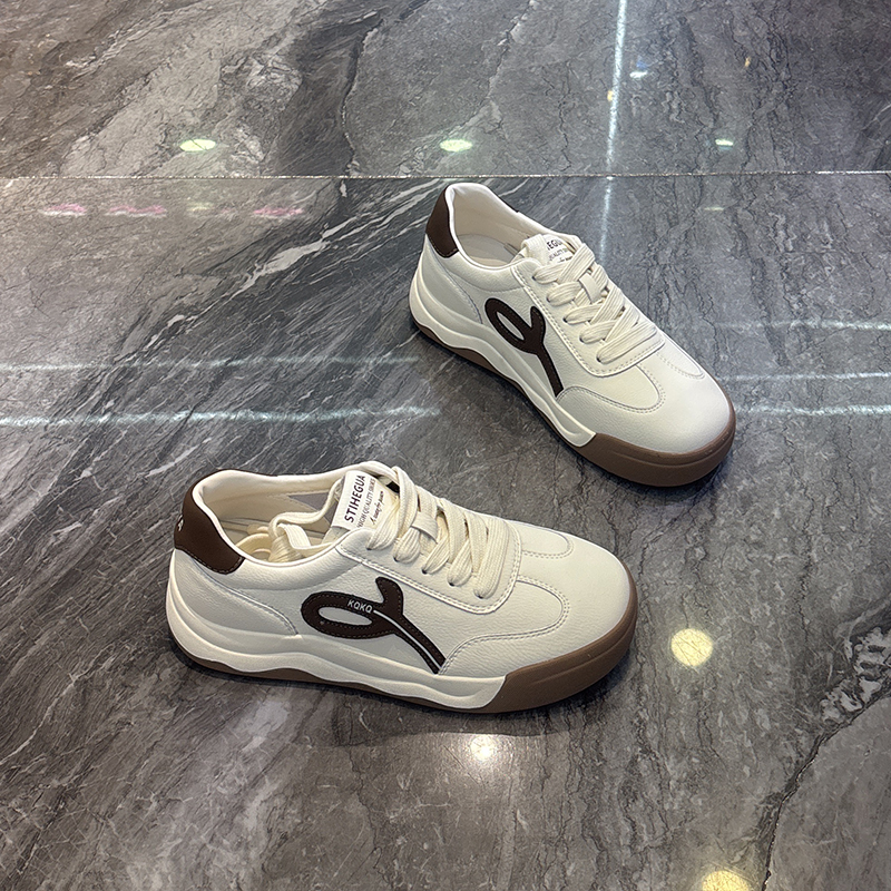 真皮厚底系带德训鞋女2025秋新款轻便舒适软底拼色韩版休闲板鞋潮