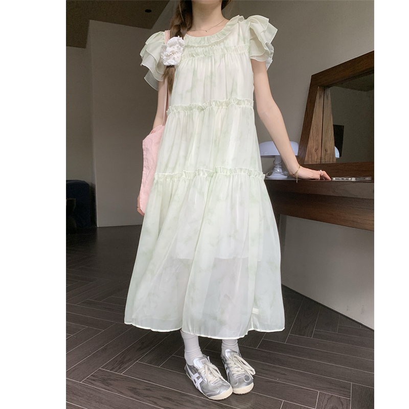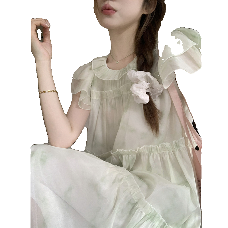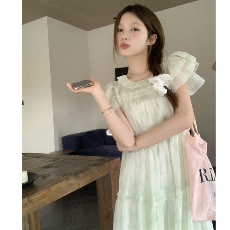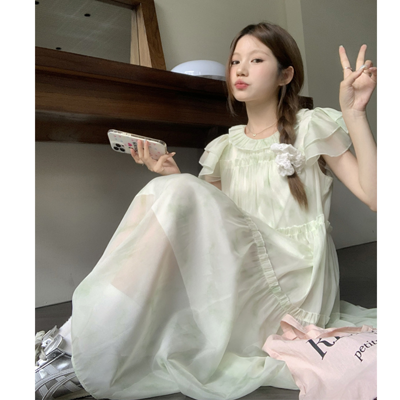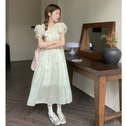 大码女装2025夏季胖mm法式气质显瘦甜美多巴胺小飞袖连衣裙仙女裙