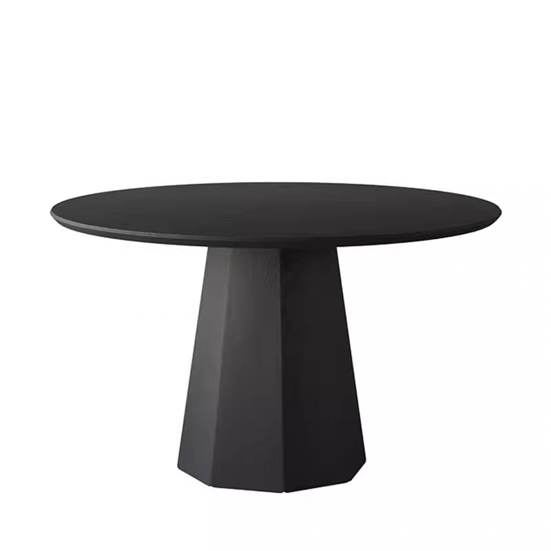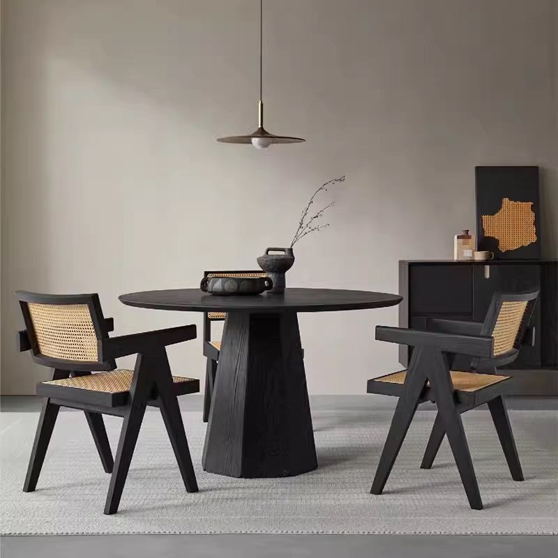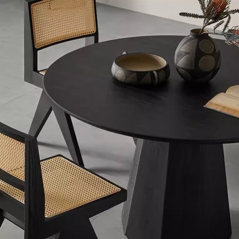 中古风实木餐桌椅组合家用小户型圆形饭桌民宿酒店复古黑色圆桌子