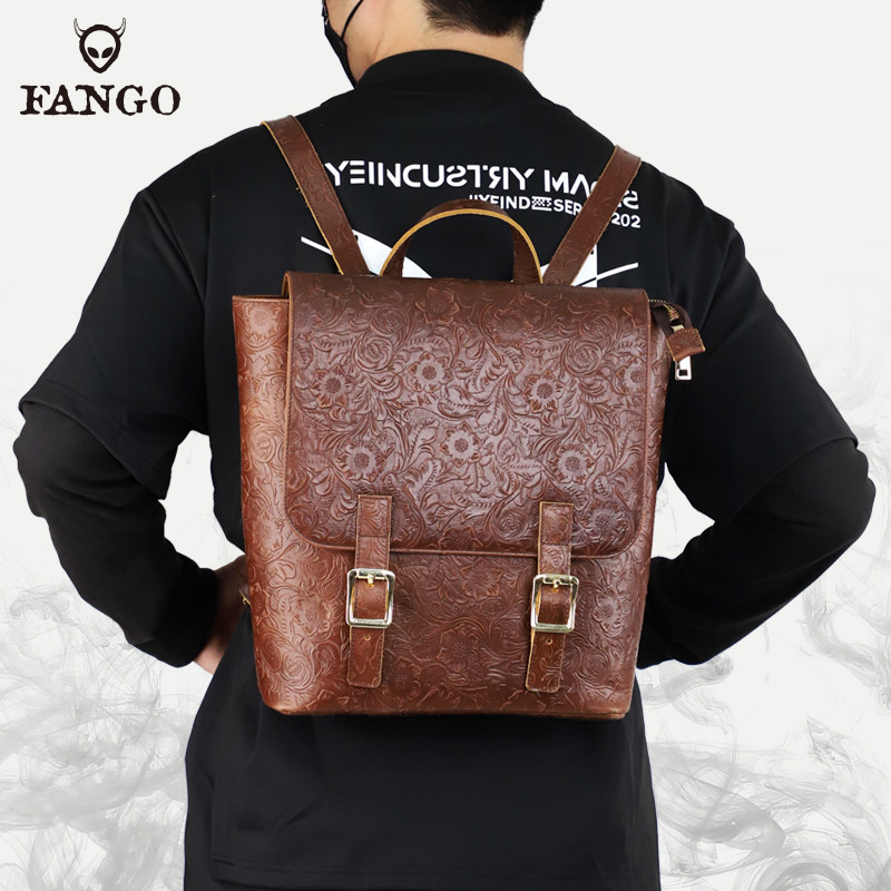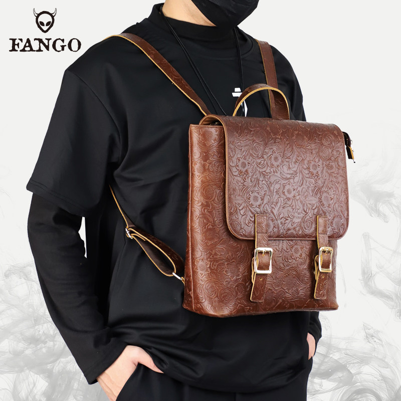 小众个性头层牛皮大容量双肩包旅行袋包国风手工真皮男士背包书包