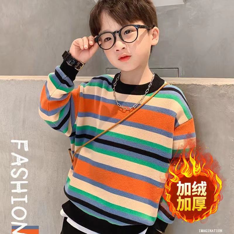 男童毛衣春秋款儿童针织衫薄款条纹纯棉打底衫中大童男孩韩版上衣