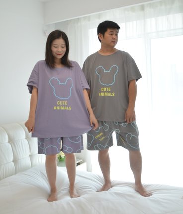 卡通加肥大码情侣睡衣男女夏季针织纯棉短袖短裤宽松200斤家居服