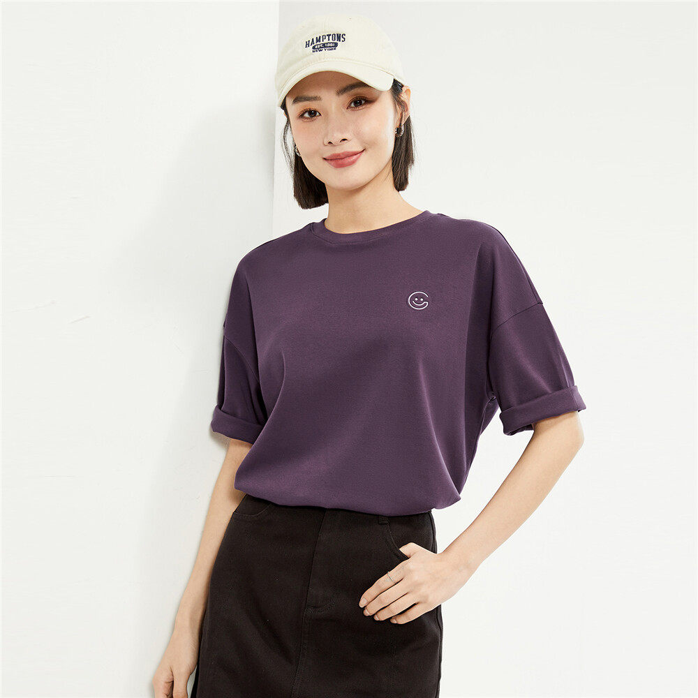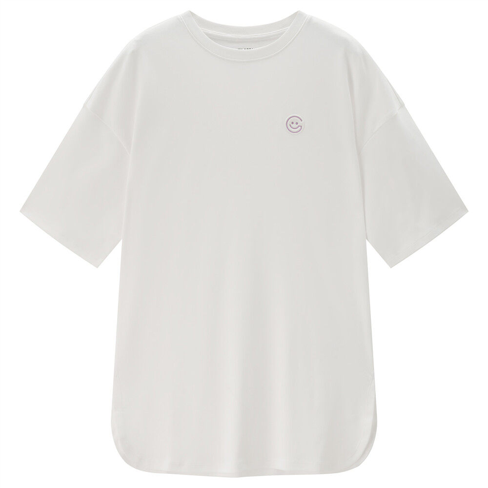 佐丹奴T恤女装纯棉双面布针织笑脸中长款圆领短袖T恤 05324426