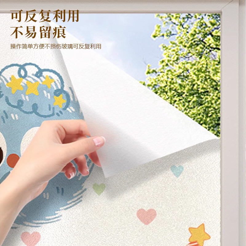 卡通窗户玻璃贴纸浴室卫生间防走光防窥膜磨砂静电贴膜透光不透人