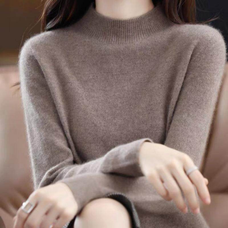鄂尔多斯市产羊绒衫女100%山羊绒半高领宽松针织毛衣百搭打底衫冬