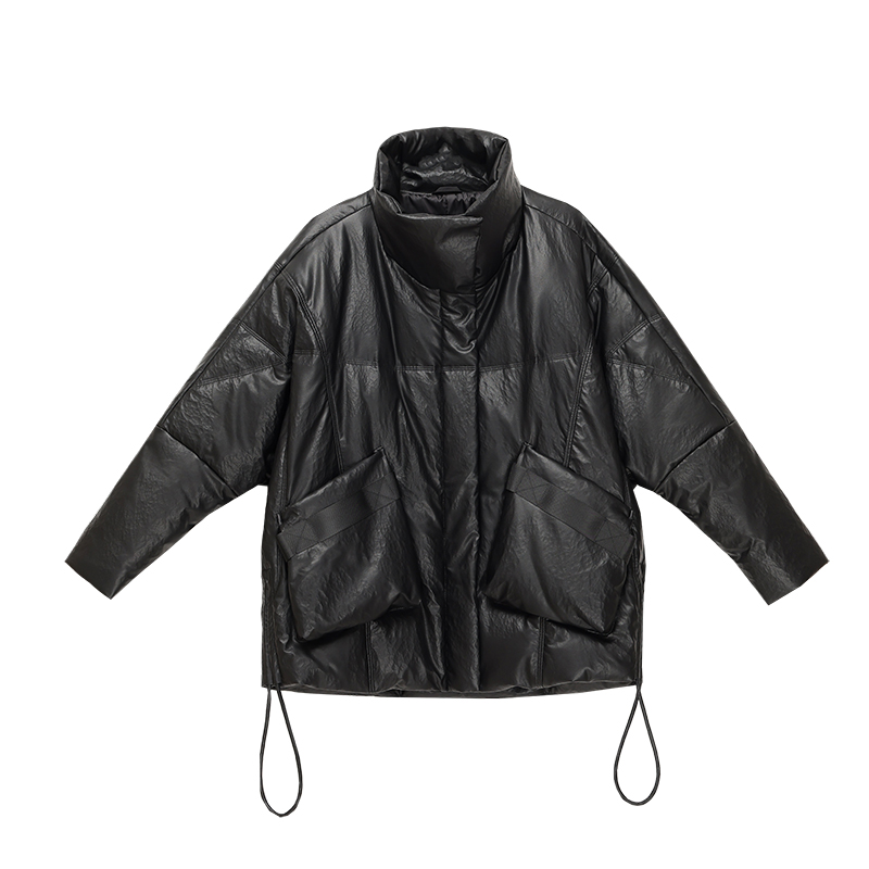 真皮羽绒服女宽松蝙蝠袖皮衣外套