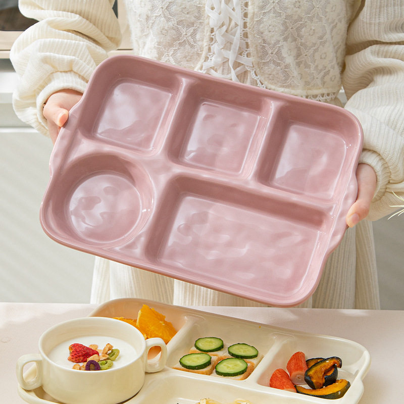 分格餐盘大人三格减脂餐盘一人食餐具釉下彩儿童早餐盘双耳水果盘