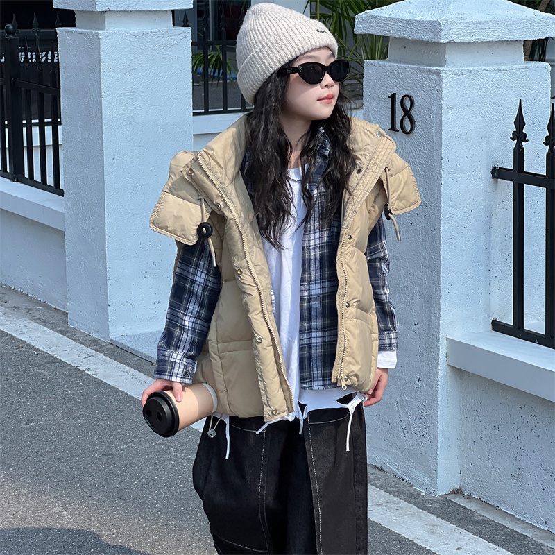 25年秋冬新品儿童羽绒马甲连帽白鸭绒韩版中大童男童女童背心坎肩