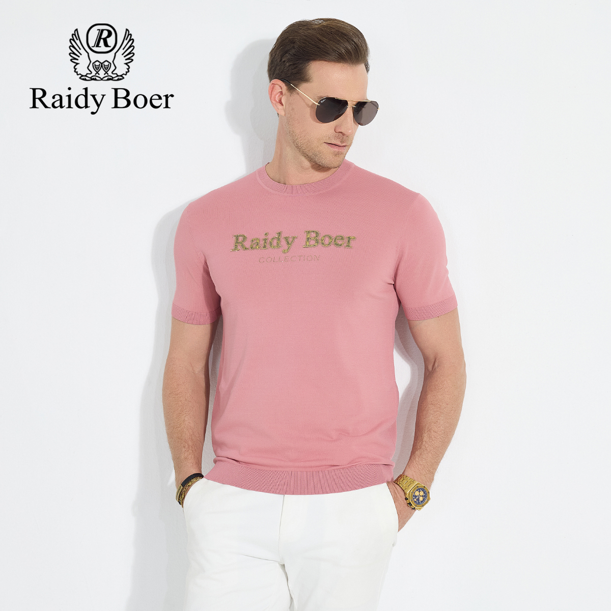 雷迪波尔男装短袖T恤2025夏季新款简约圆领修身套头弹力针织衫男