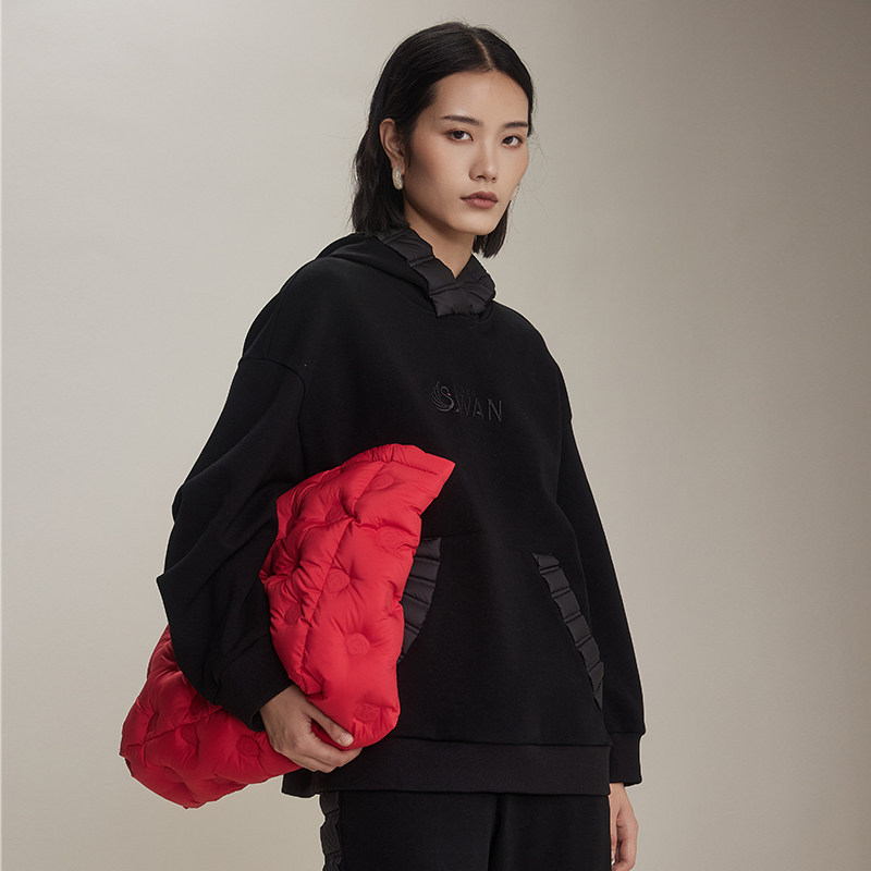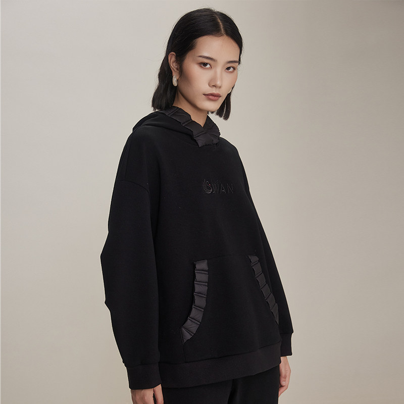 梵凯卫衣女2024冬时尚设计宽松版连帽剌绣冬季加绒加厚套头衫卫衣