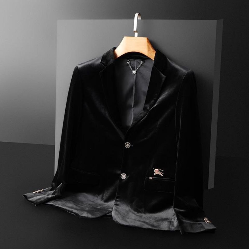 2025秋季新款商务青年金丝绒刺锈西服外套轻奢休闲西装夹克上衣男