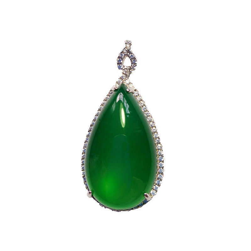 天然冰种绿色玉髓水滴吊坠银项链子翡翠色玛瑙宝石女款送妈妈女友