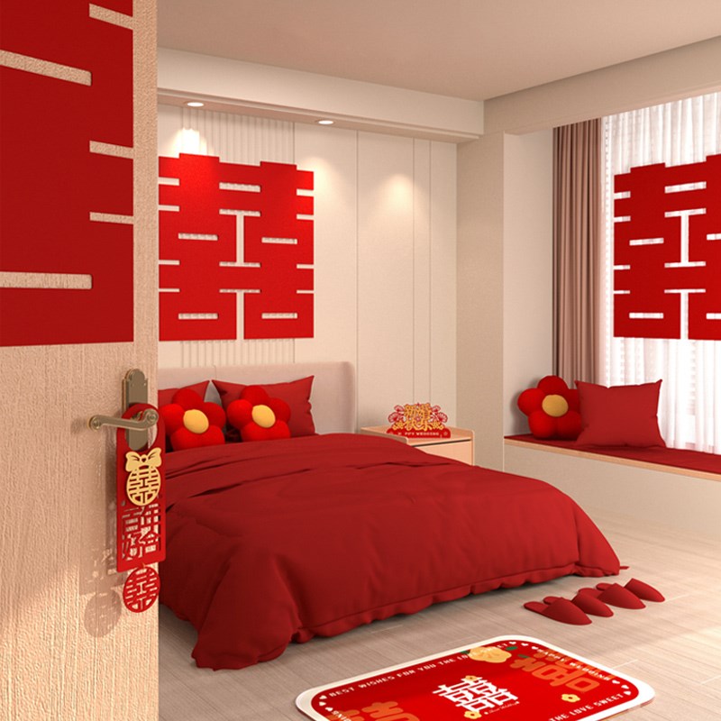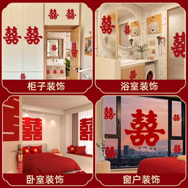 速发结婚喜字贴婚房布置装饰婚窗贴电礼户卧室静门贴大小囍字套装