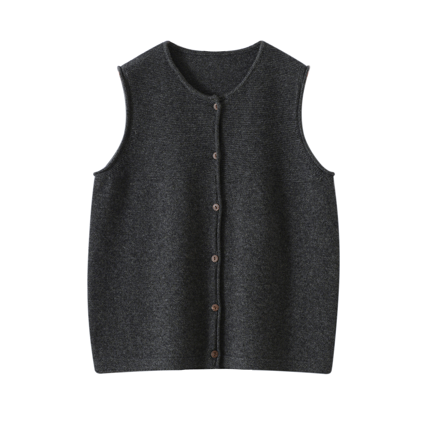 秋冬新款山羊绒衫女圆领无袖针织马甲开衫宽松显瘦毛衣叠穿坎肩
