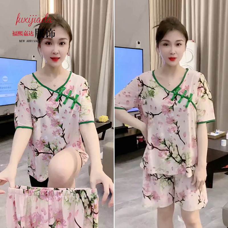 爆款睡衣女夏天冰丝凉爽不沾身国潮风家居服两件套短袖短裤可外穿
